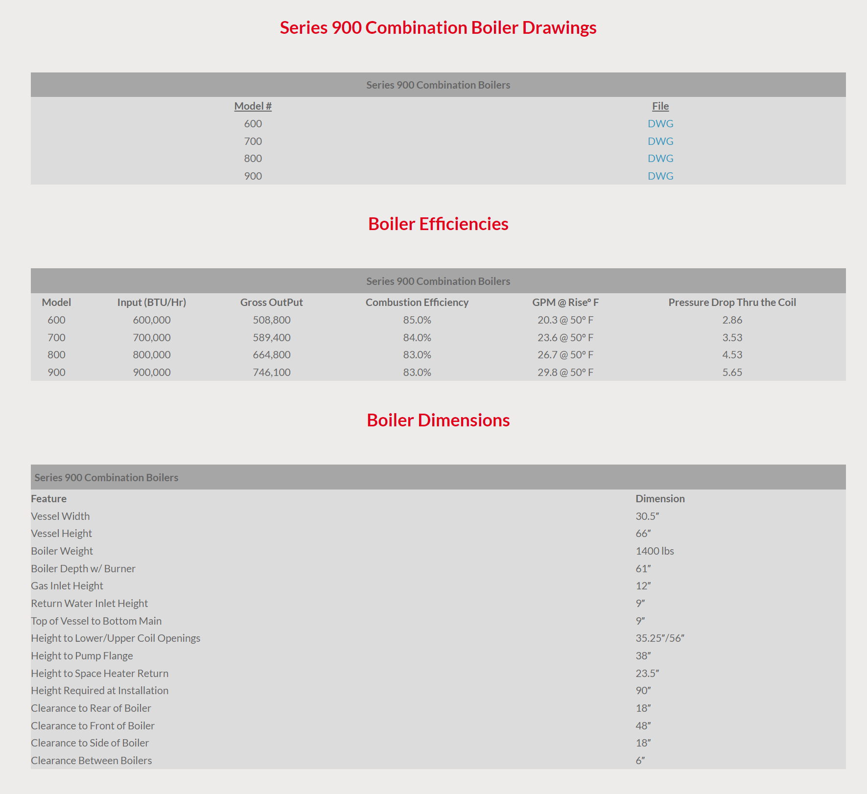 All necessary boiler controls and secondary plumbing are in place and pre wired, and the vessels easily fit through a 32″ doorway, resulting in a very quick start-up. Each vessel contains a 97 foot copper coil through which the domestic hot water is circulated. This coil is surrounded by the hot boiler water, which transfers heat to the coil. Firing rates for the Series 900 Combination Boiler are available from 600,000 Btu/hr to 1,000,000 Btu/hr. However, many millions of Btu’s can be delivered by creating an efficient, fully modular system of up to 24 vessels operated by our computerized control panel.